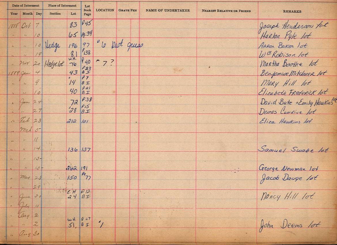 Interment Book # 1 August 7, 1826 to August 1, 1931