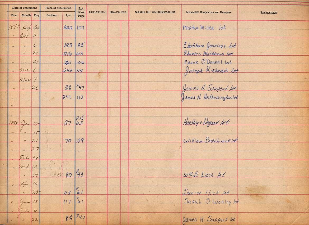 Interment Book # 1 August 7, 1826 to August 1, 1931