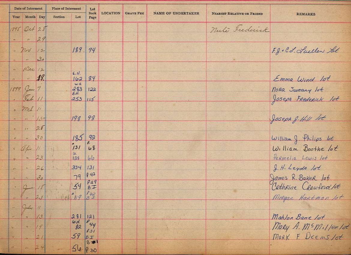 Interment Book # 1 August 7, 1826 to August 1, 1931