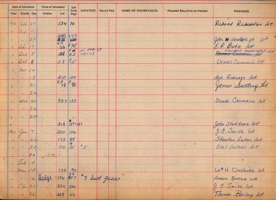 Interment Book # 1 August 7, 1826 to August 1, 1931