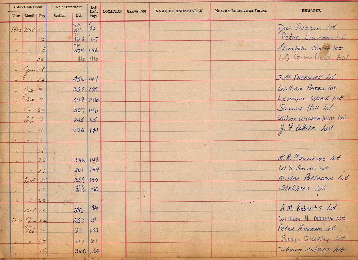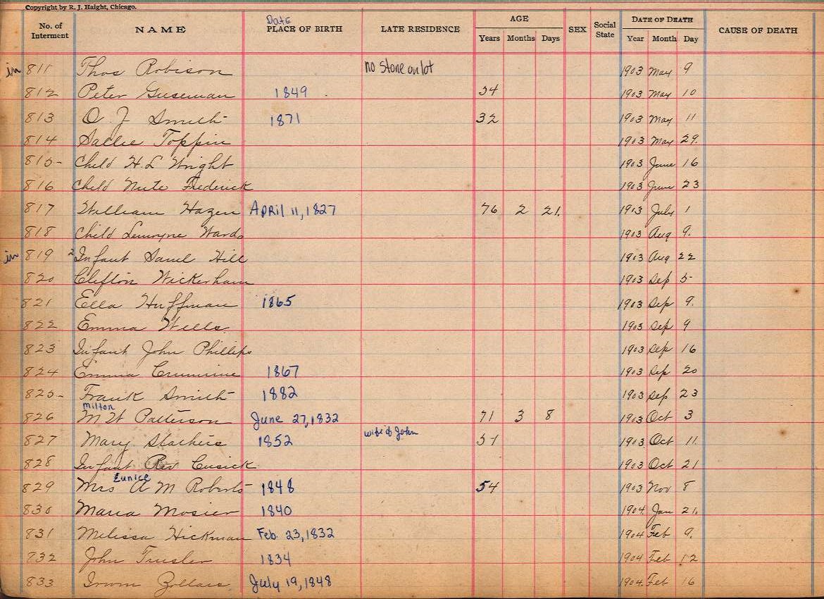 Interment Book # 1 August 7, 1826 to August 1, 1931