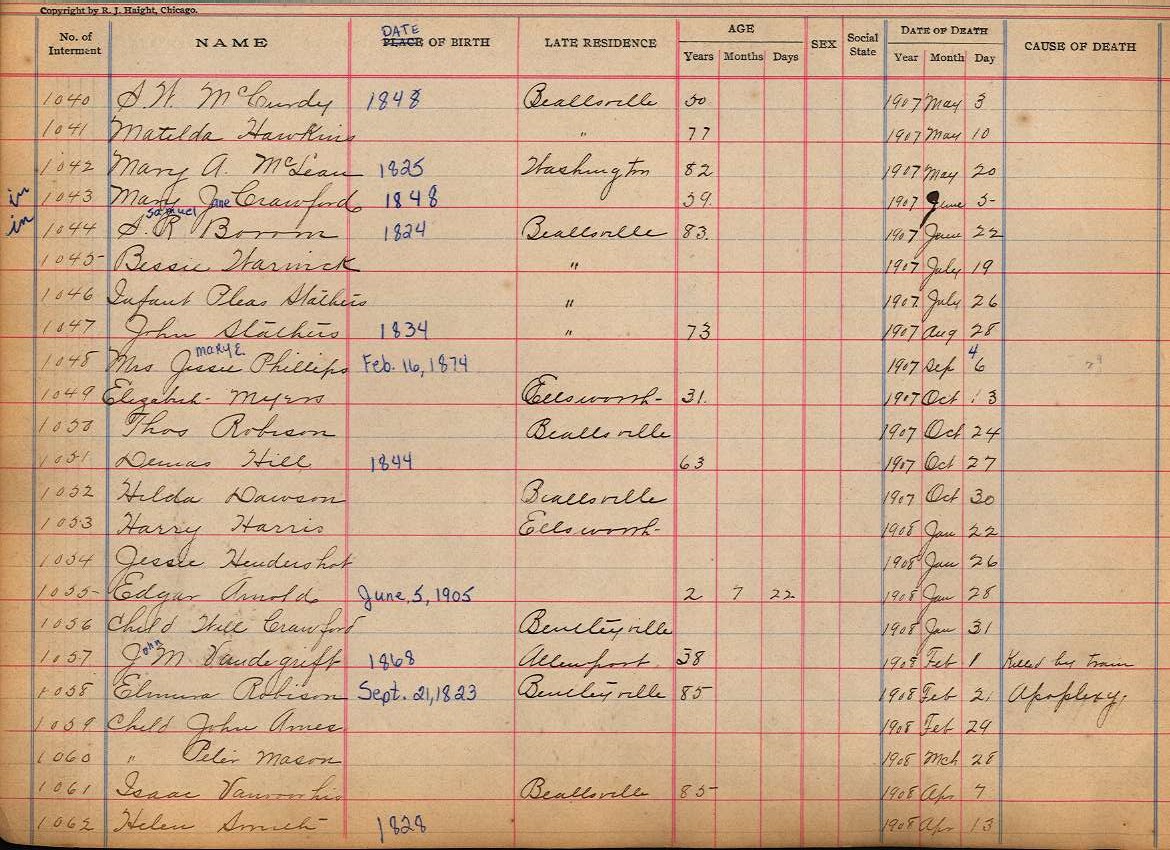 Interment Book # 1 August 7, 1826 to August 1, 1931