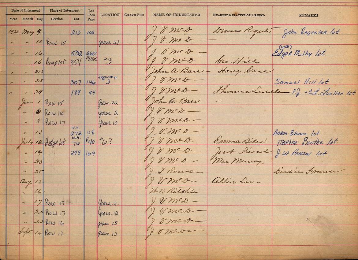Back to Interment Book Index