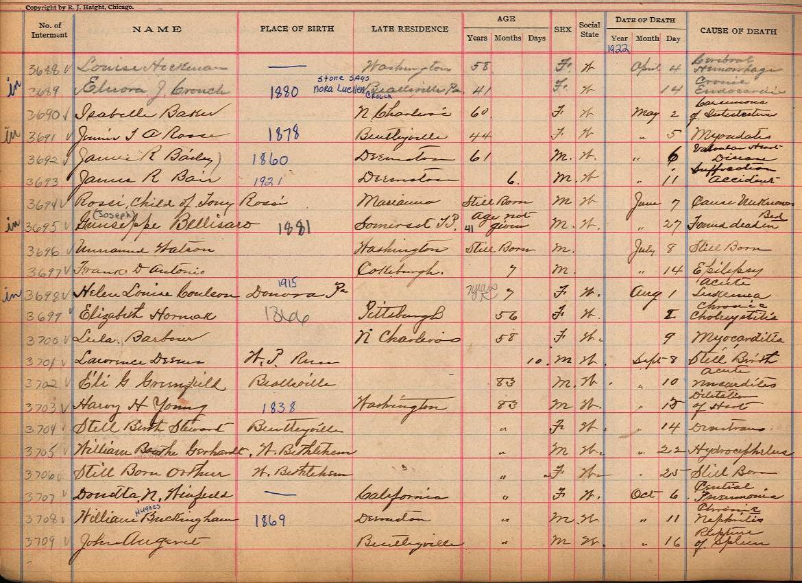 Back to Interment Book Index