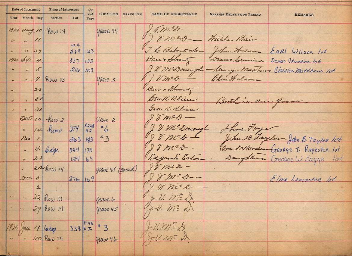Interment Book # 1 August 7, 1826 to August 1, 1931