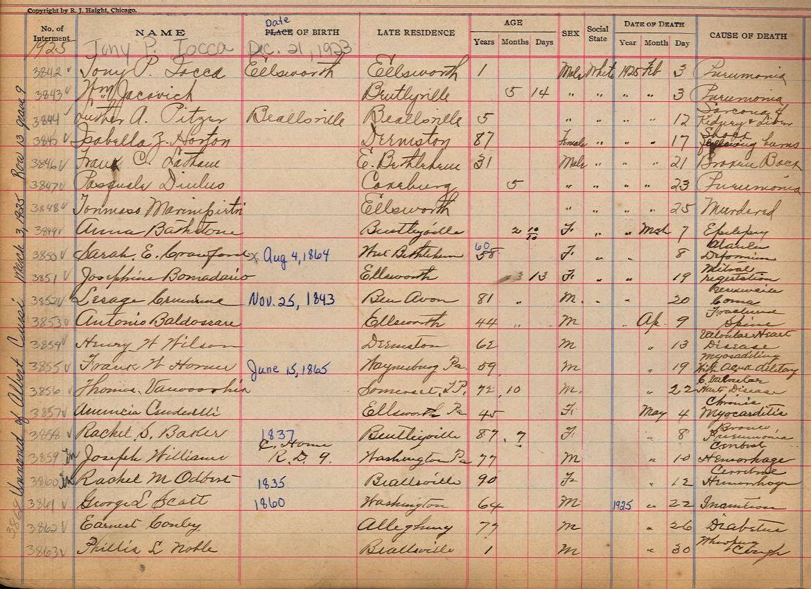 Back to Interment Book Index