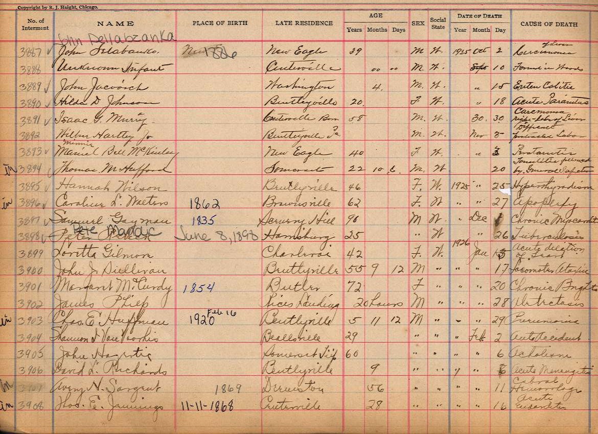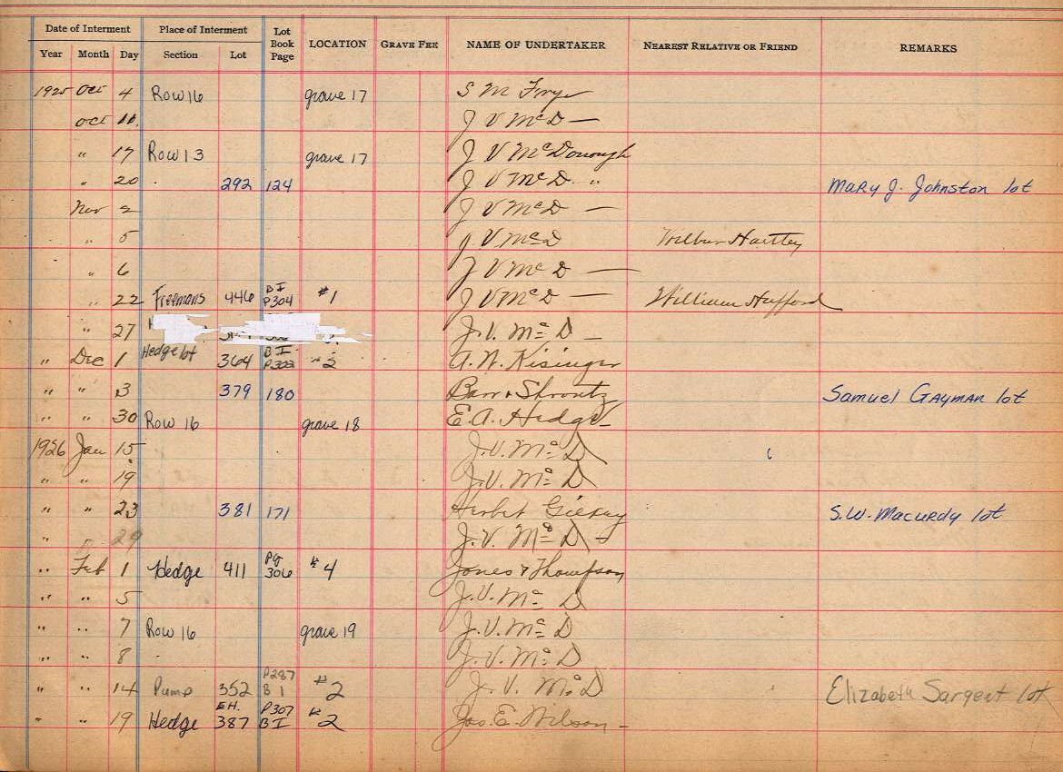 Interment Book # 1 August 7, 1826 to August 1, 1931