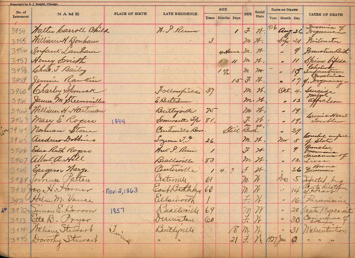 Interment Book # 1 August 7, 1826 to August 1, 1931