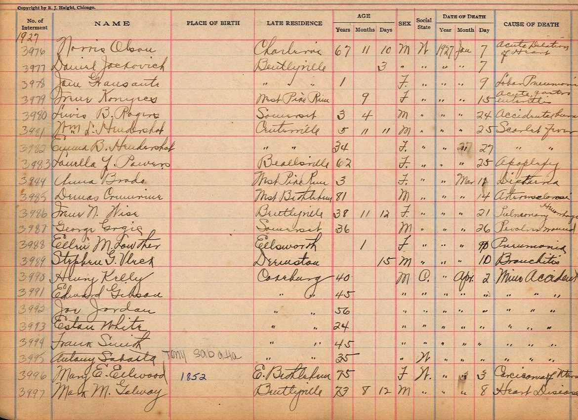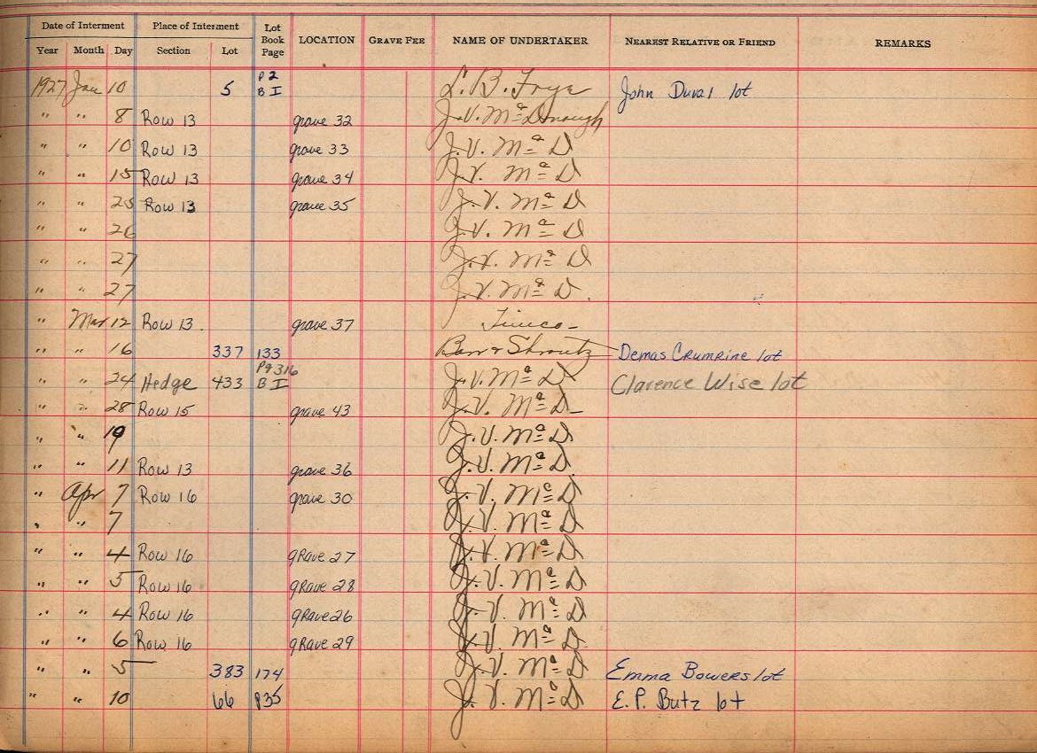 Interment Book # 1 August 7, 1826 to August 1, 1931