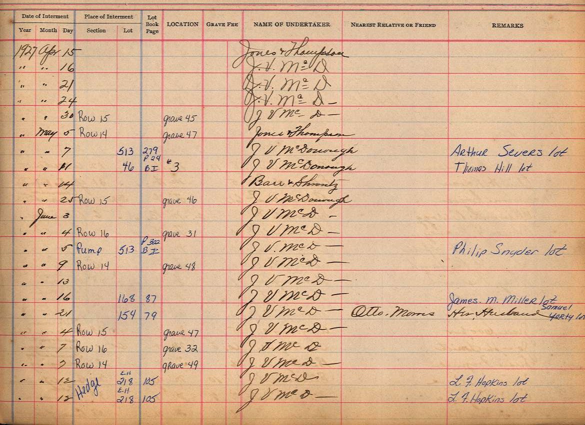 Back to Interment Book Index