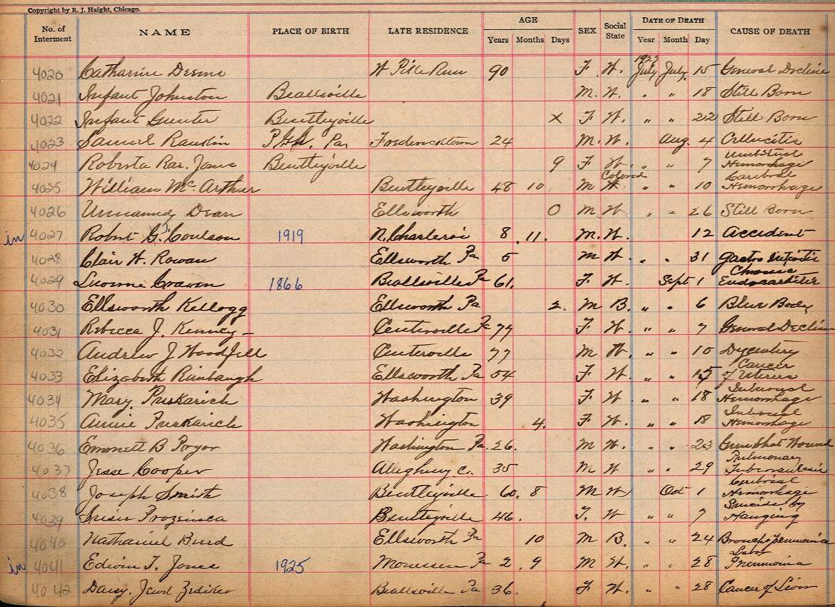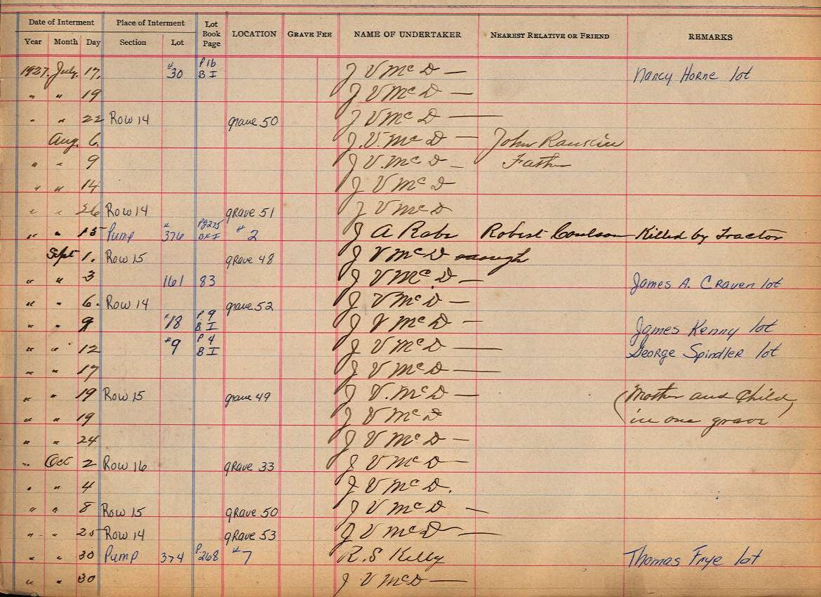 Interment Book # 1 August 7, 1826 to August 1, 1931