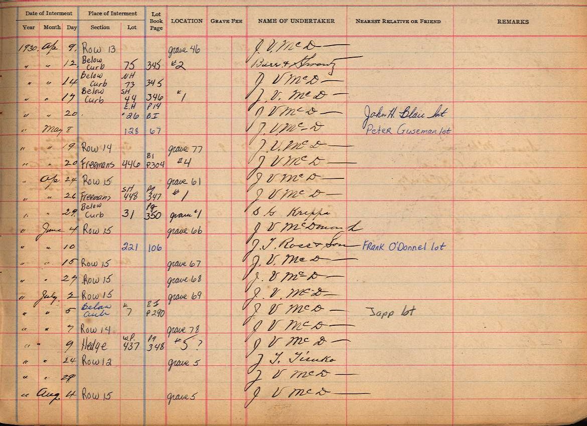Interment Book # 1 August 7, 1826 to August 1, 1931
