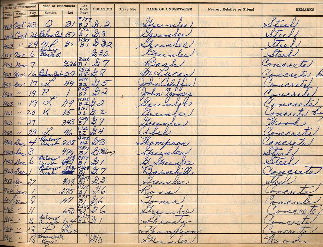 Interment Book # 3 Nov 1962 - Dec 1999