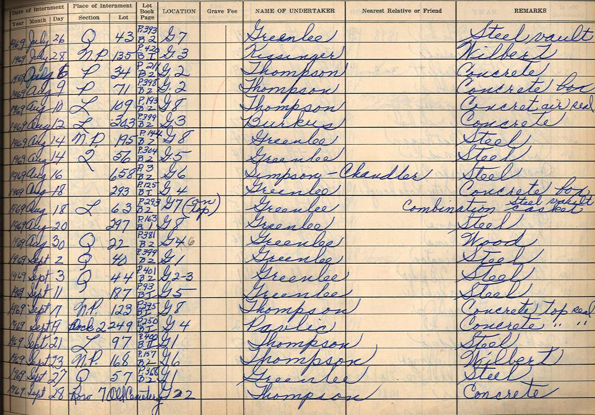 Interment Book # 3 Nov 1962 - Dec 1999
