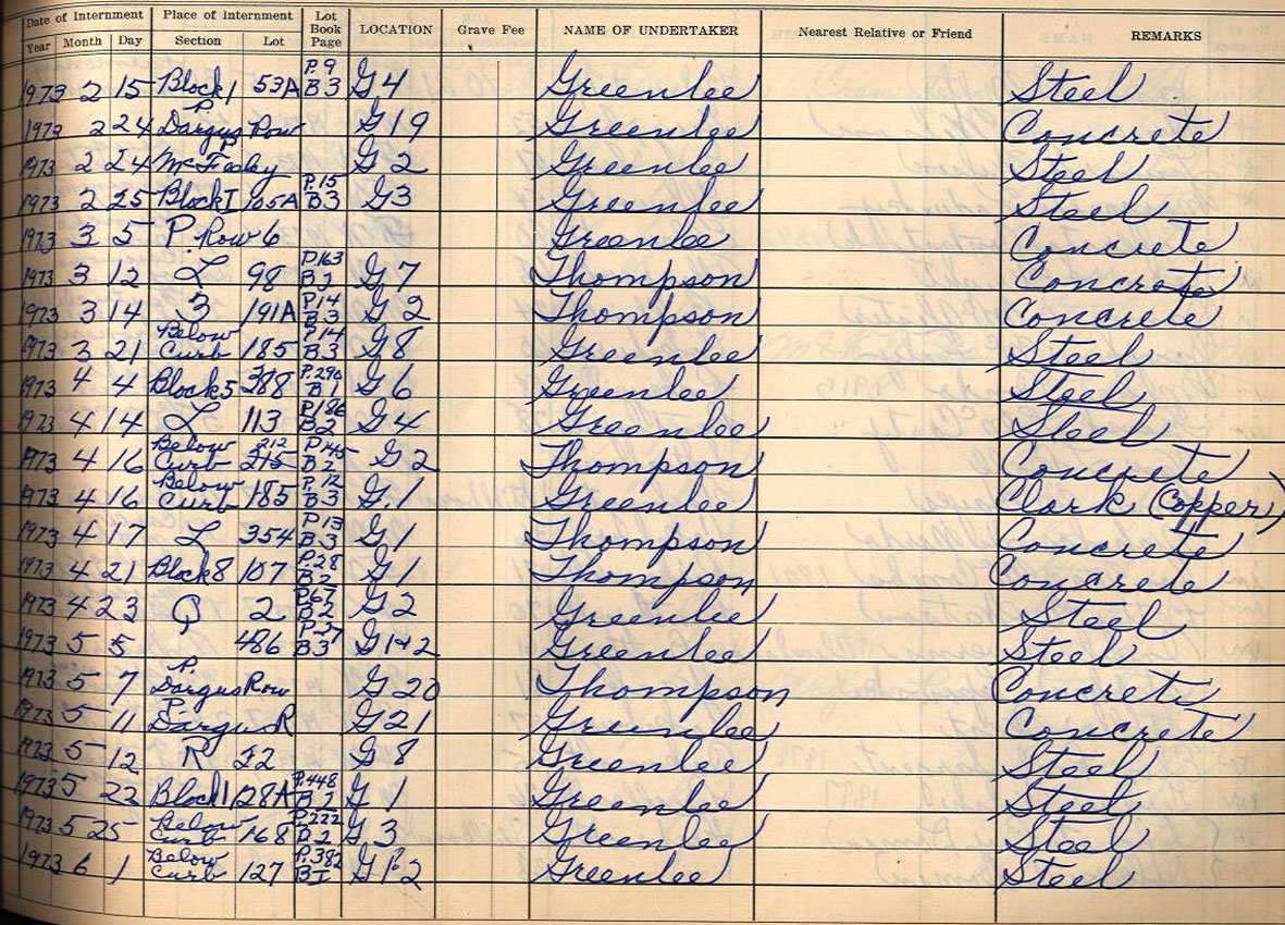 Interment Book # 3 Nov 1962 - Dec 1999