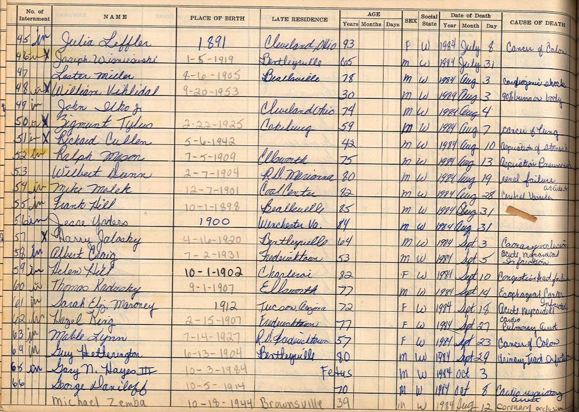 Interment Book # 3 Nov 1962 - Dec 1999