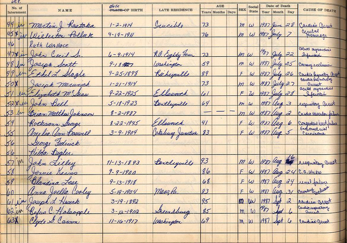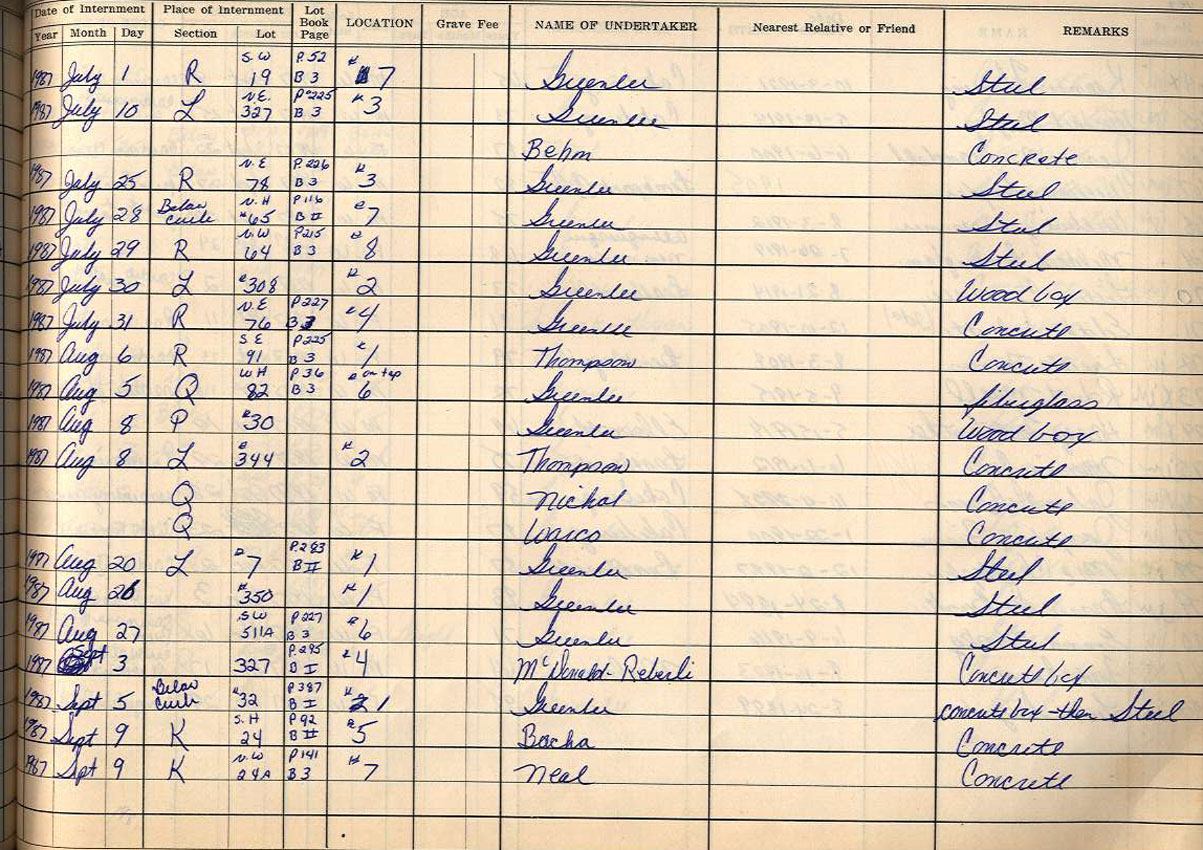 Interment Book # 3 Nov 1962 - Dec 1999