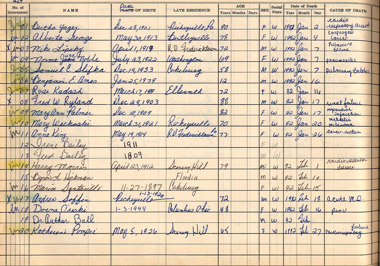 Back to Interment Book Index
