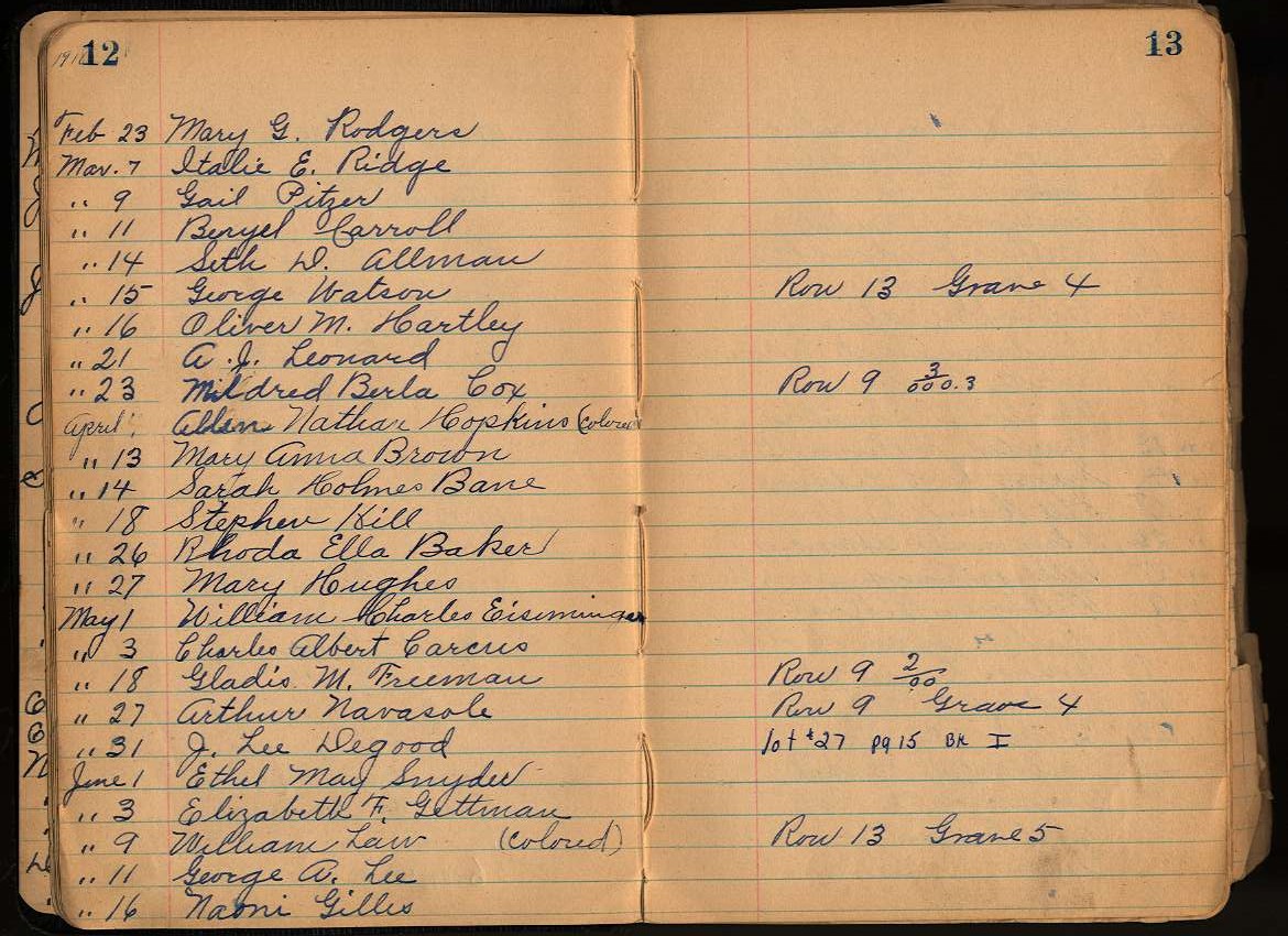 "Little Black Book" of interments