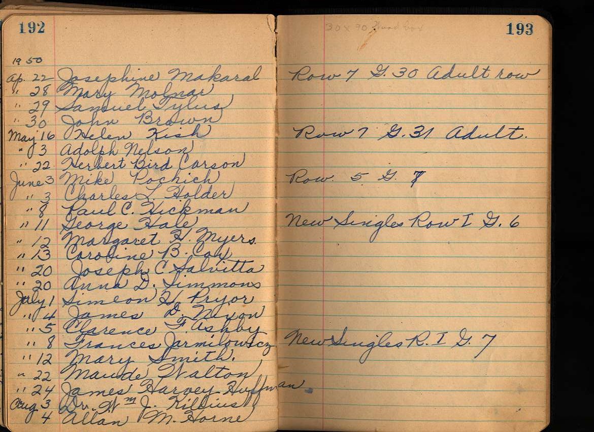"Little Black Book" of interments